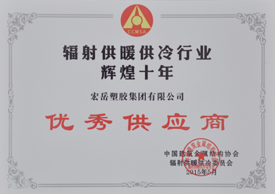 2015年5月15日,中国辐射供暖供冷委员会十周年庆典在北京盛大举行。会上表彰了一批对辐射供暖供冷行业发展作出突出贡献的企业和个人,乐鱼集团喜获中国辐射供暖供冷行业辉煌十年优秀供应商殊荣,乐鱼塑胶集团有限公司张思良总经理荣获中国辐射供暖供冷行业功勋奖。