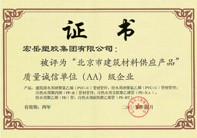 质量是产品的核心价值,诚信是企业的发展动力。凭借过硬的产品质量和良好的企业信誉,继2011年入选首批北京建筑材料供应单位产品质量诚信A级企业之后,2015年4月,乐鱼获评北京建筑材料供应产品质量诚信AA级企业。