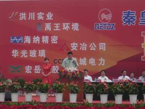最后,朱浩文市长代表市委市政府致辞,对15个新建项目的集中开工表示祝贺,他指出,无论是项目类别还是投资的强度,都具有较好的示范效应,项目建成投产后对扩张经济规模、提升产业素质,加快全市的经济发展比较起到促进作用。并表态,将坚决向企业兑现市政府制定的相关优惠政策,为企业提供优质高效的全情服务,积极帮助企业解决在建设生产过程中碰到的困难和问题,为客商办实事、解难题、送温暖。他要求建设单位要按照用一流工程遗留质量、树一流品牌的要求,高标准高质量的完成工程建设任务,确保项目早日达产达效。最后,随着礼炮声的响起,烟花绚烂绽放,动工仪式圆满结束。
