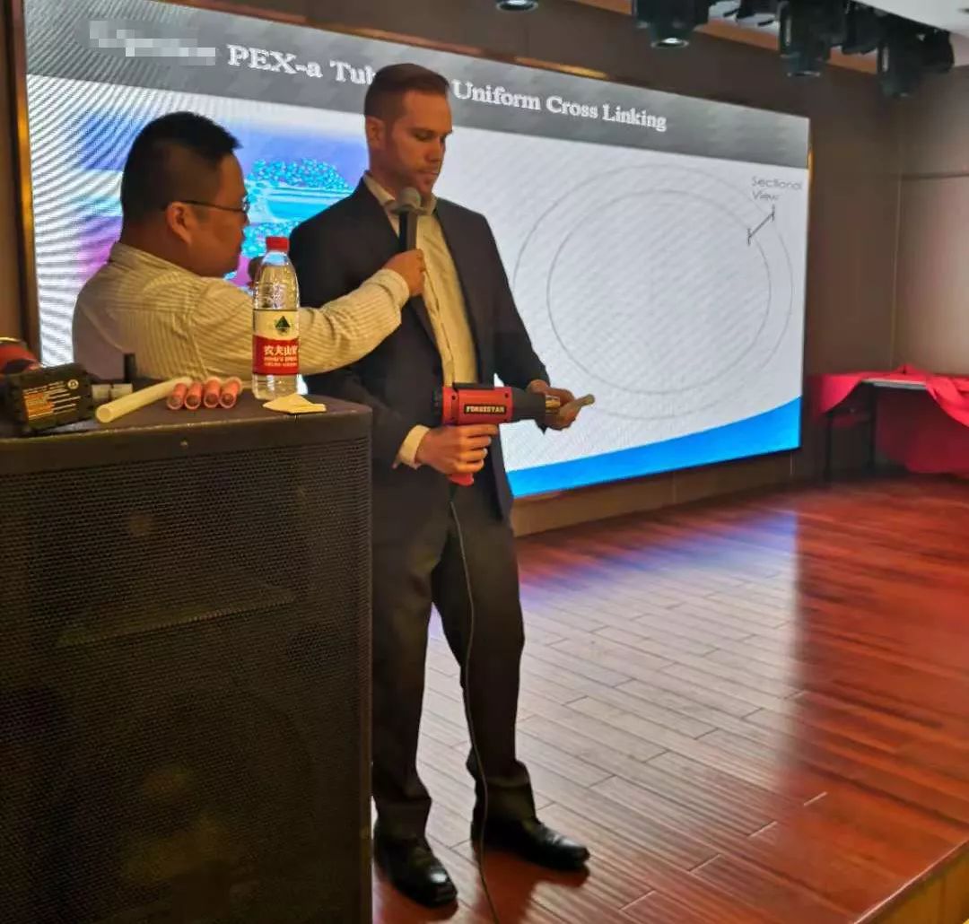 随后,乐鱼集团美国技术总监JOHN先生为大家详尽介绍了PE-Xa"零"漏点给水系统的性能优势及该系统在美国乃至国际市场上的广泛应用情况,让参会人员对国际领先的产品系统与应用技术也增进更深的认识与了解。