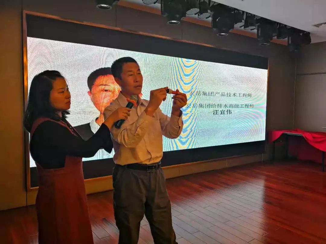 乐鱼集团高级技术工程师汪宜伟先生,对乐鱼1+的施工标准及技术要点进行了现场讲解,并着重介绍了乐鱼1+“PVC快修管件”、“高水封大流量地漏”等特色产品,通过案例讲解、现场演示等多种方式,让参会人员切实的感受到不一样的产品、不一样的乐鱼1+。