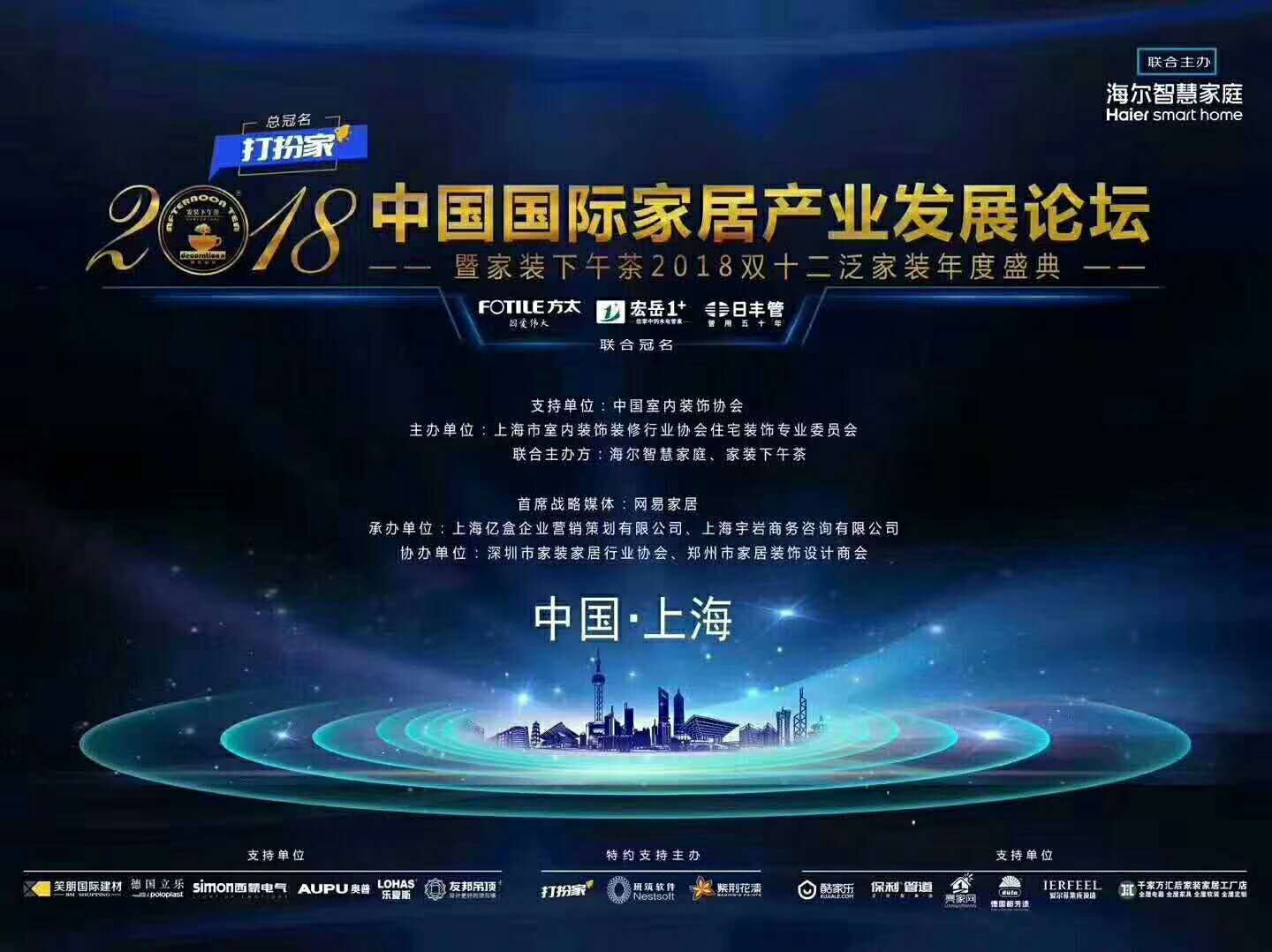 2018年12月12日-14日,2018中国国际家居产业发展论坛暨双十二泛家装年度盛典在上海隆重举行,1500余位家装精英及上下游产业大咖同场交流,分享前沿实践智慧,碰撞行业火花,乐鱼1+作为本次活动联合冠名商荣耀亮相。