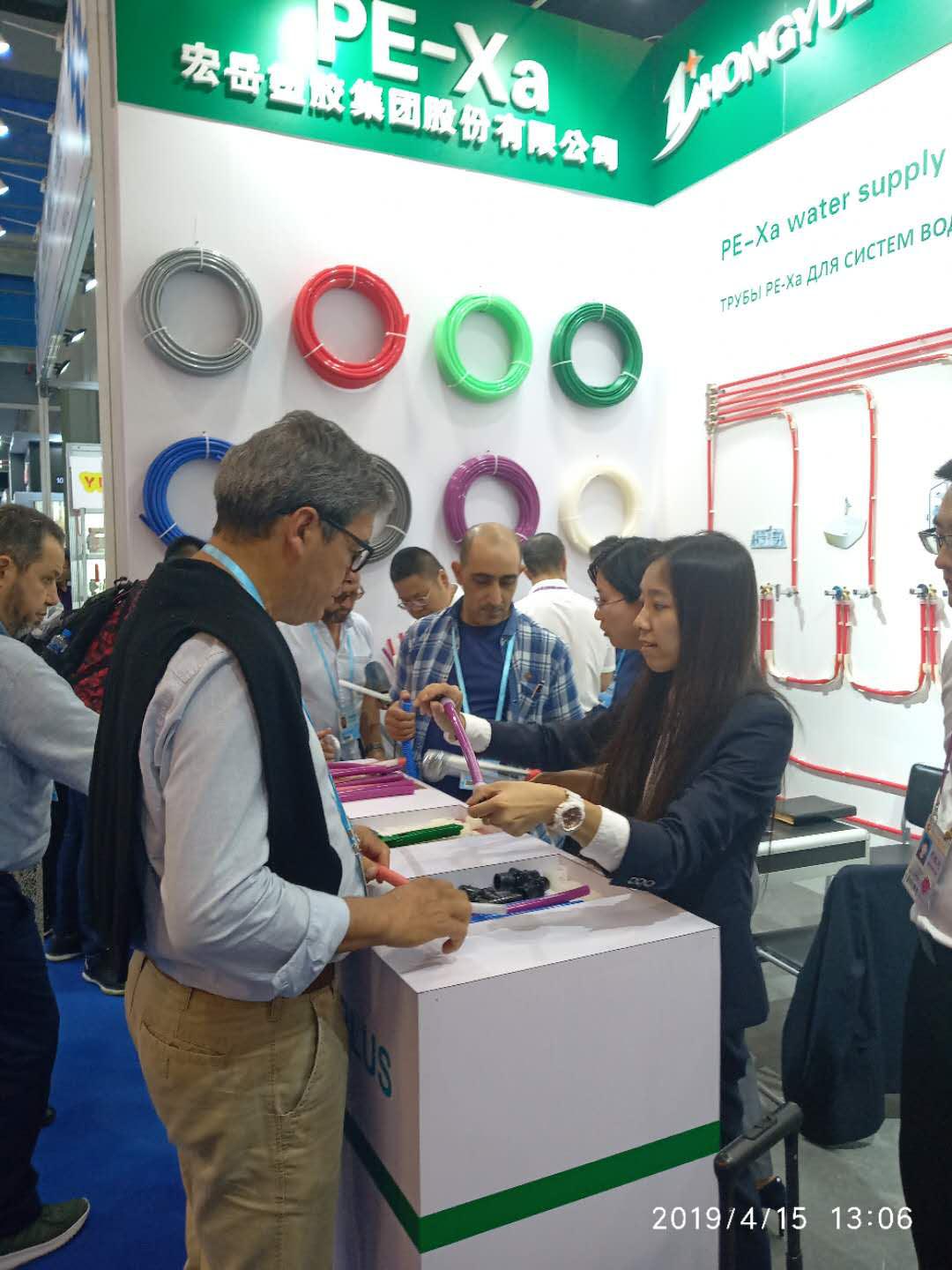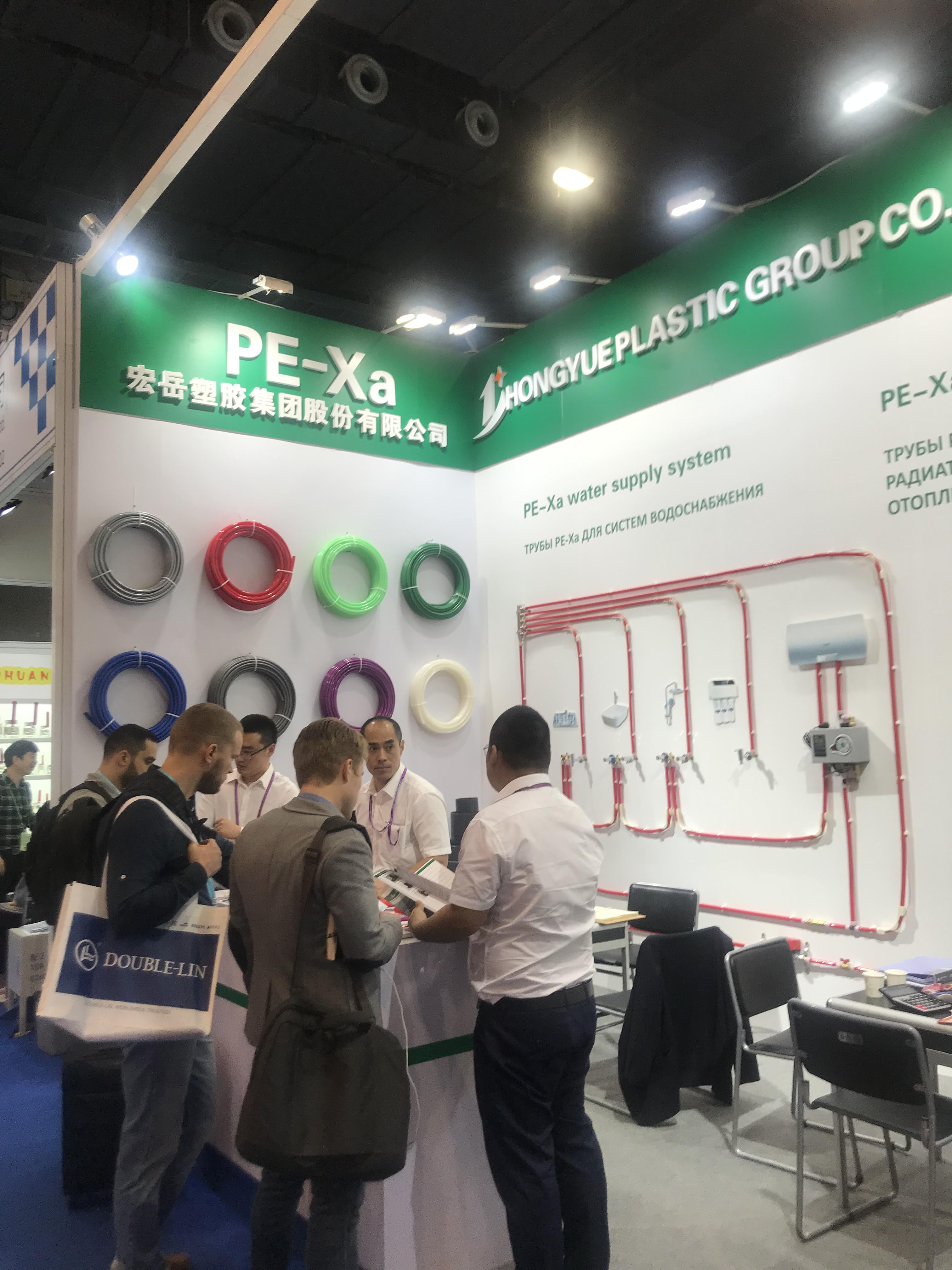 乐鱼展位前人潮攒动,络绎不绝,来自世界各国的采购商对乐鱼参展产品表现出了浓厚的兴趣,纷纷驻足了解乐鱼产品,最吸引各国客商目光的是PE-Xa给水系统。