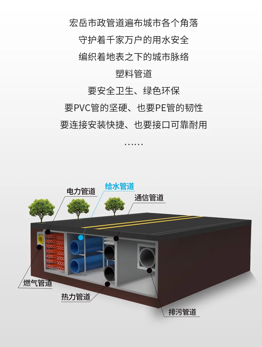 乐鱼PVC-UH管材自成功开发以来,已应用于自来水管网给水、园林绿化给水、城市管网建设项目等诸多市政工程。乐鱼将持续为城市建设提供更多更好的管道选择。