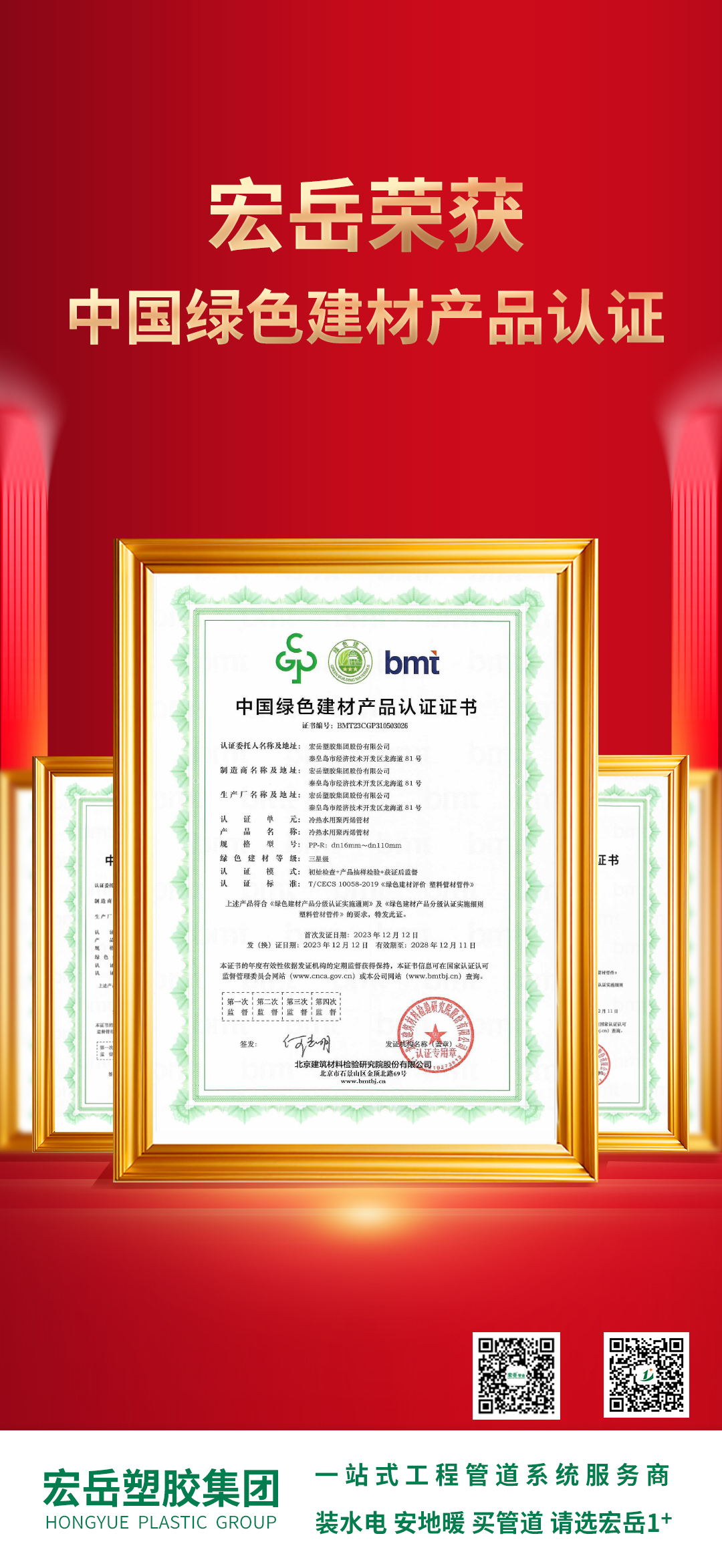 乐鱼获得中国绿色建材产品认证,本次认证对PPR、PVC、PE、PE-Xa、PE-RT管材管件等11个单元的系列产品,以环保、节能、节水、循环、低碳等评价维度进行了相关审核,乐鱼集团顺利通过。